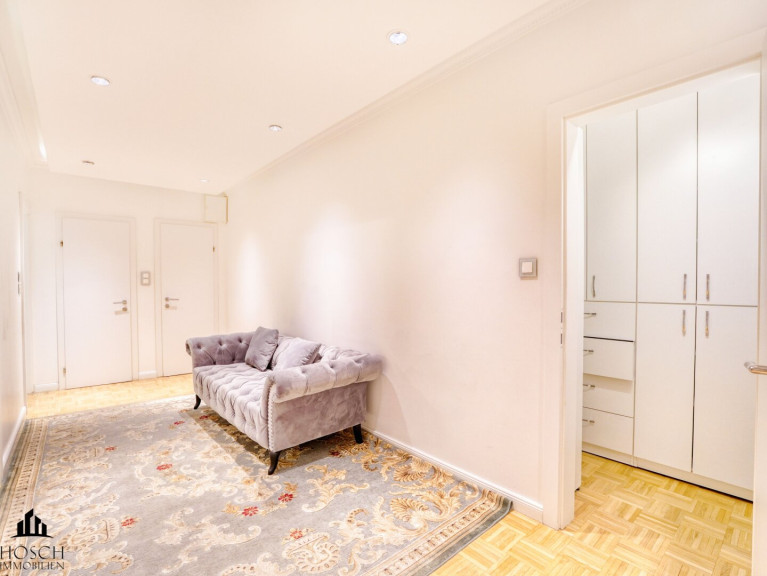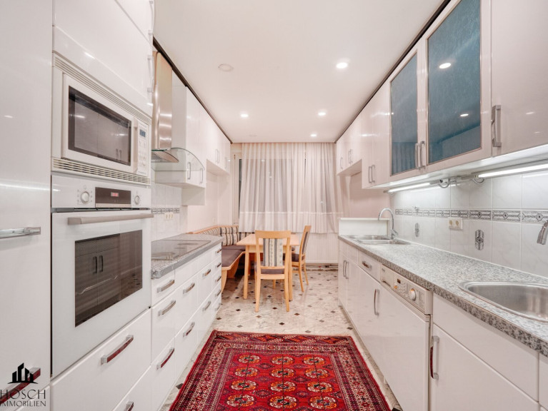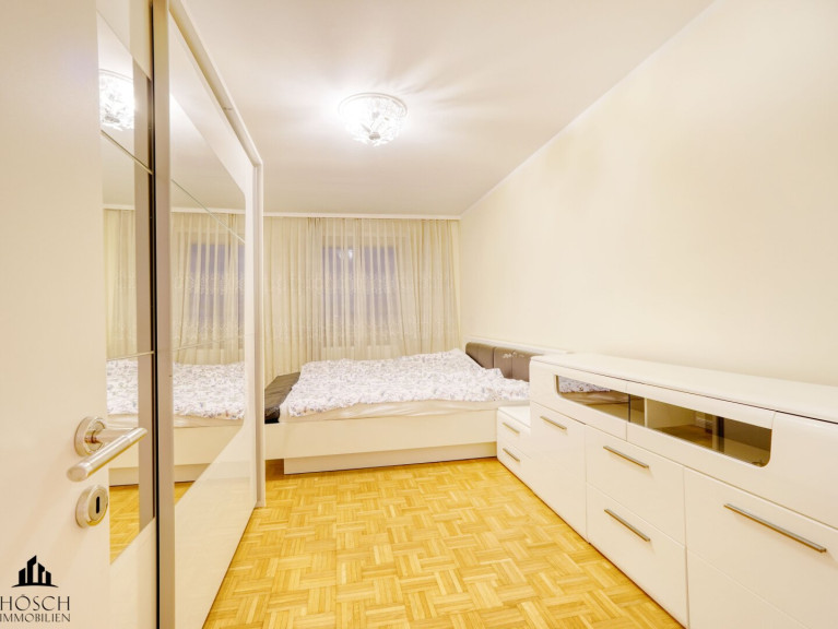Beim Betreten der Wohnung empfängt Sie ein heller, einladender Wohnbereich, der durch die großen Fensterflächen mit einem beeindruckenden Stadtblick begeistert. Die hochwertige Ausstattung mit Parkett- und Fliesenböden schafft eine angenehme Atmosphäre und verbindet modernes Design mit wohnlichem Komfort. Die Einbauküche ist perfekt auf Ihre Bedürfnisse abgestimmt und lädt zu gemeinsamen Kochabenden mit Familie und Freunden ein.
