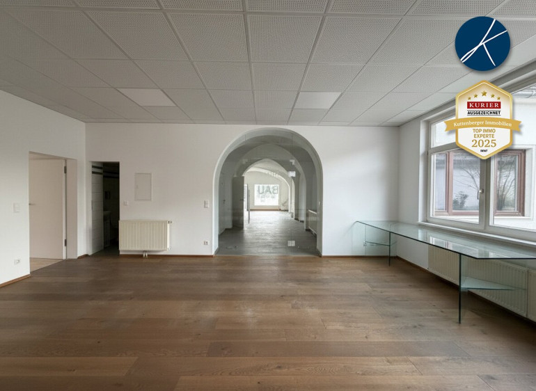 Die Büroflächen wurden vor rund 20 Jahren generalsaniert und präsentieren sich in einem guten Gesamtzustand. Über einen Windfang gelangt man in den zentralen Vorraum mit einem schönen Gewölbe, von dort sind teils zentral und teils kreisförmig insgesamt 9 Büro- oder Arbeitsräume zu erreichen. Weiters gibt es 2 Teeküchen, 3 Toiletträume sowie eine schöne Atrium-Terrasse mit Grünfläche. Beheizt wird das Objekt mit einer Gaszentralheizung und Radiatoren, auf dem Dach ist eine PV-Anlage (8kWp) installiert.