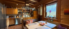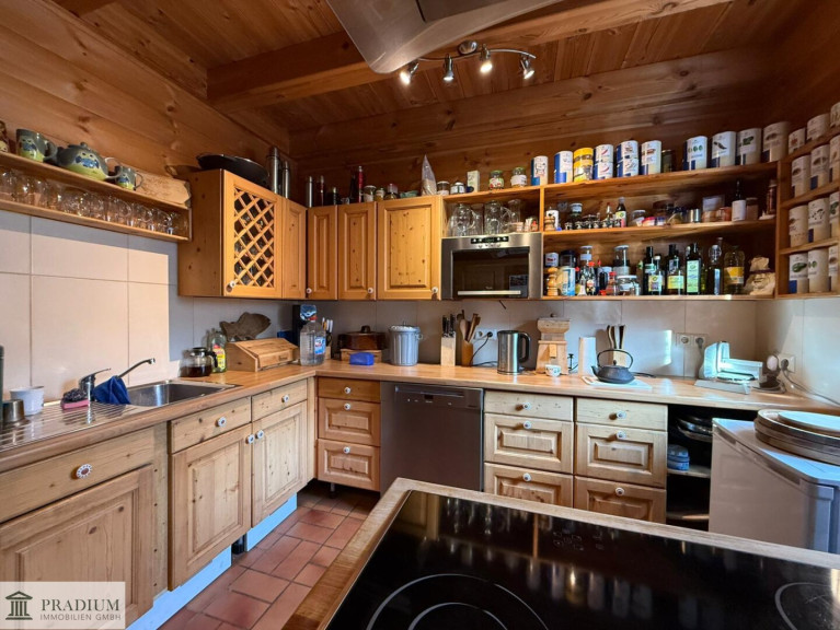 Die Einbauküche ist funktional integriert und bietet ausreichend Platz für gemeinsames Kochen.