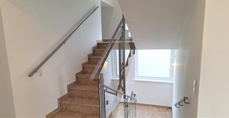 Dieses Haus wurde 1971 in Massivbauweise, einem Walmdach inklusive Wärmedämmung zwischen den Sparren und Deckung mit Dachschindeln, errichtet. 1998 wurde das Dachgeschoss ausgebaut und 2007 wurden alle Fenster mit Zweifachverglasung in Kunststoff (Farbe Weiß) erneuert. Ende 2023 wurden das Erdgeschoss, das Dachgeschoss, der Keller, die Terrasse und die Fassade (10cm Baumit „open air KlimaschutzFassade“) teilsaniert. Die Küche wurde geöffnet, damit verfügt das Haus über einen großzügigen, hellen Wohnküchenbereich. Alle Bäder und WC´s wurden in modernem Design ausgeführt. Die Wohn- und Schlafräume verfügen über helle Massivparkettböden und die Nutzflächen sind verfliest. Heizung- und Warmwasseraufbereitung erfolgt über die im Technikraum installierte Gastherme und dem Warmwasserboiler.