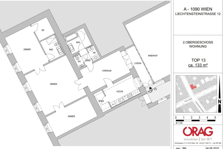 Die Liechtensteinstraße 12 befindet sich im 9. Wiener Gemeindebezirk, auch als Alsergrund bekannt. Die Straße liegt in einem zentralen, urbanen Gebiet und ist gut mit öffentlichen Verkehrsmitteln erreichbar. Wenn Sie von der Stadtmitte (Stephansplatz) kommen, erreichen Sie die Liechtensteinstraße bequem mit der U-Bahn-Linie U2, indem Sie an der Station „Schottentor“ aussteigen. Von dort sind es nur wenige Minuten zu Fuß. Die Liechtensteinstraße verläuft in nordwestlicher Richtung, und die Hausnummer 12 befindet sich in der Nähe der Kreuzung mit der Porzellangasse. In der Umgebung finden sich zahlreiche Einrichtungen wie Cafés, Restaurants, Supermärkte sowie kulturelle Einrichtungen wie das Theater an der Josefstadt und das Universitätsspital. Auch die Universität Wien ist nur eine kurze Gehstrecke entfernt, was diese Gegend zu einem beliebten Wohn- und Arbeitsort für Studierende und Fachkräfte macht. Die Gegend zeichnet sich durch eine gute Anbindung an das öffentliche Verkehrsnetz, einschließlich der Straßenbahnlinien 43 und 44 sowie der Buslinien 13A und 5A, aus. Das Gebiet ist auch mit dem Fahrrad gut erreichbar und bietet zahlreiche Grünflächen, wie den nahegelegenen Alserbachpark und das Allgemeine Krankenhaus (AKH) mit seinen weitläufigen Anlagen.