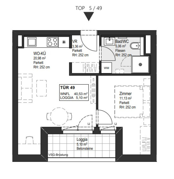Fliesen, Parkett, Fußbodenheizung, Einbauküche, Ostbalkon, Dusche