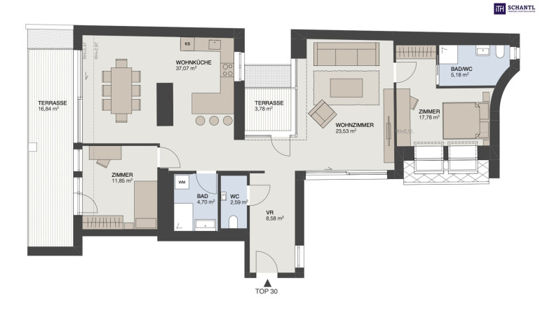 Top 30 - 3 Zimmer - mit ca. 112,20 m² WFL + ca. 20,29 m² Freifläche: KP € 1.810.000.-