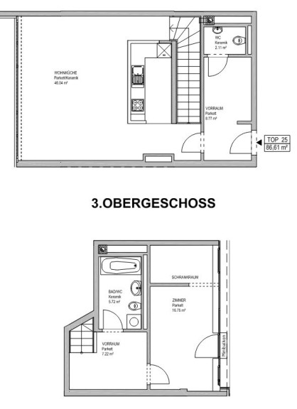 INNSTASSE, gepflegte 87 Neubau-Maisonette, 2 Zimmer, Komplettküche, Wannenbad, Parketten, 4. Liftstock