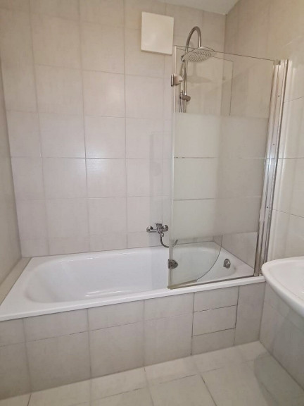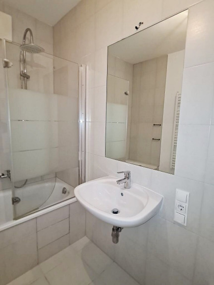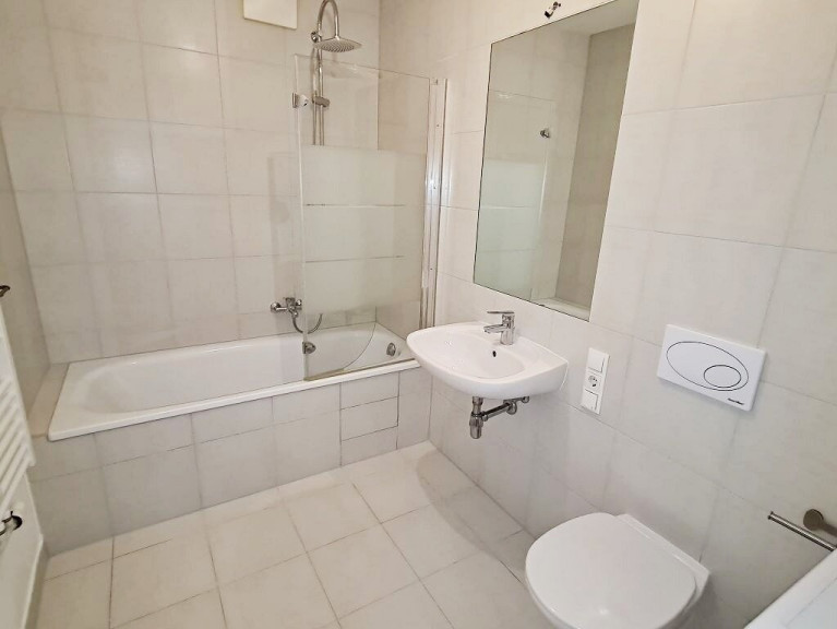 + Badezimmer mit Badewanne, Waschtisch, WC und Waschmaschinenanschluss