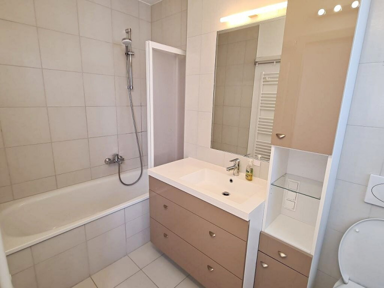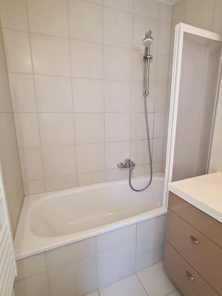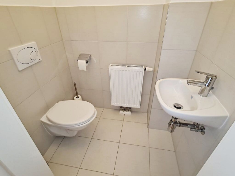 + Badezimmer mit Badewanne, Waschtisch, WC und Waschmaschinenanschluss