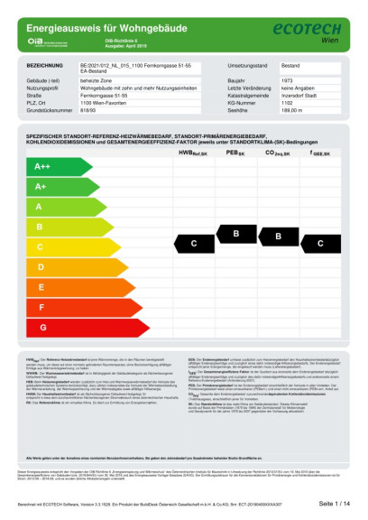 | Heizwärmebedarf: | C 65,20 kWh/m²a |