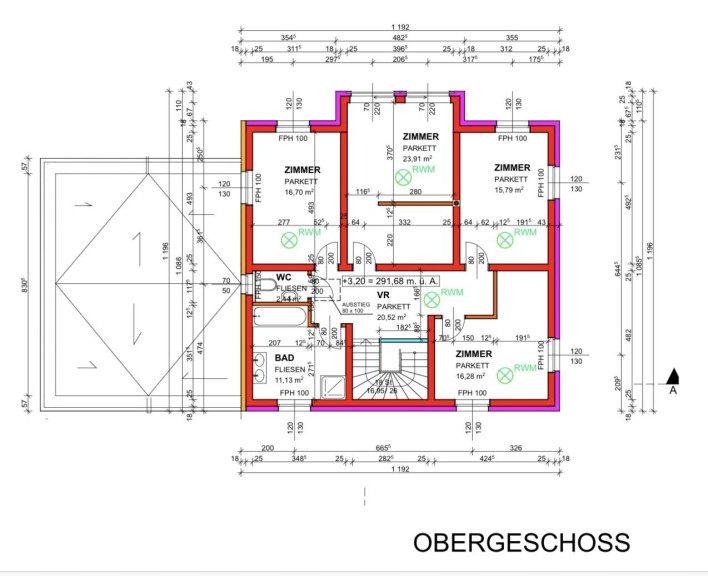 - Zimmer 1: 23,91 m² (Master Bedroom möglich)