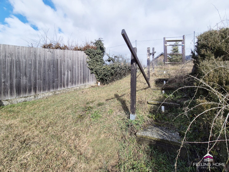 Der terrassenförmig angelegte Garten charakterisiert diese Liegenschaft. Er bietet Raum für Entspannung und die Freude an der Natur – ein stimmungsvoller Rückzugsort im Weinviertler Grün.
