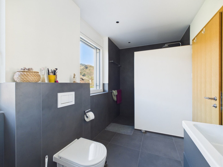 Genießen Sie das helle und freundliche Wohnambiente mit einer modernen Wohnküche, die zum gemeinsamen Kochen und Verweilen einlädt. Die offene Gestaltung schafft eine einladende Atmosphäre, die perfekt für Familien oder Paare ist. Hochwertige Parkett- und Fliesenböden sorgen für ein angenehmes Wohngefühl, ergänzt durch eine energiesparende Fußbodenheizung, die für wohlige Wärme an kalten Tagen sorgt.