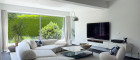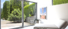 Raumhohe Terrassenschiebeelemente sorgen für fließende Übergänge zwischen innen und außen. Technisch ist das Haus auf dem neuesten Stand: Eine Fußbodenheizung mit Luft-Wärmepumpe, Solaranlage, elektrische Raffstores, Klimaanlage, Hausstaubsauganlage sowie eine integrierte Beleuchtung bieten höchsten Wohnkomfort. Flachdach und Terrasse wurden kürzlich erneuert. Ein Brunnen für die Bewässerung des Gartens befindet sich ebenfalls am Grundstück.
