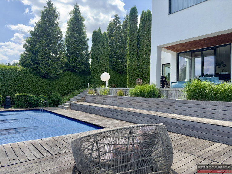 Die im Jahr 2002 errichtete Villa wurde 2014 durch einen Zubau sowie eine umfassende Modernisierung auf den neuesten Stand gebracht. Zum Einsatz kamen ausschließlich hochwertige Baumaterialien und Ausstattungsdetails – darunter edle Echtholz- und Natursteinböden, großformatiges Feinsteinzeug sowie ausgewählte Sanitärelemente. Das Design ist zeitlos elegant und unterstreicht den hohen architektonischen Anspruch des Hauses.