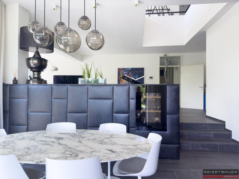 In der idyllischen Ortschaft Dietach, nur unweit von Wels entfernt, befindet sich diese exklusive Architektenvilla in ruhiger Lage. Das ca. 1.268 m² große Osthanggrundstück überzeugt mit traumhafter Aussicht und liegt am Ende einer Sackgasse – jede Etage dieses beeindruckenden Anwesens ist bis ins kleinste Detail durchdacht und mit luxuriösen Elementen ausgestattet.