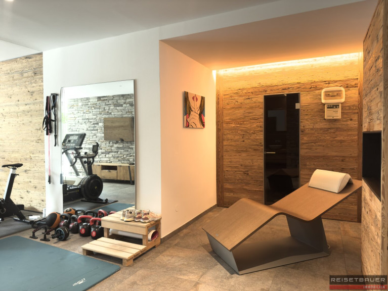 Das Untergeschoss besticht durch einen lichtdurchfluteten, offenen Wohn- und Essbereich mit hochwertiger Küche und angrenzender Speisekammer. Von hier aus gelangt man auf eine überdachte, großzügige Terrasse mit Teakholzbelag und herrlichem Ausblick. Ein Abstellraum sowie ein Weinkeller ergänzen das Raumangebot. Der hauseigene Wellness- und Fitnessbereich mit Sauna und Blick zur Terrasse bietet pure Entspannung. Ein zusätzlicher Schrankraum sorgt für viel Stauraum.