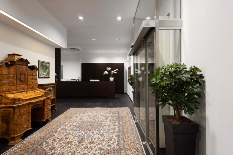 Das Büro bietet ausreichend Platz für Beratungs- oder Klientengespräche. Die moderne, gepflegte Umgebung trägt zu einem professionellen Auftreten gegenüber Kund*innen bei.