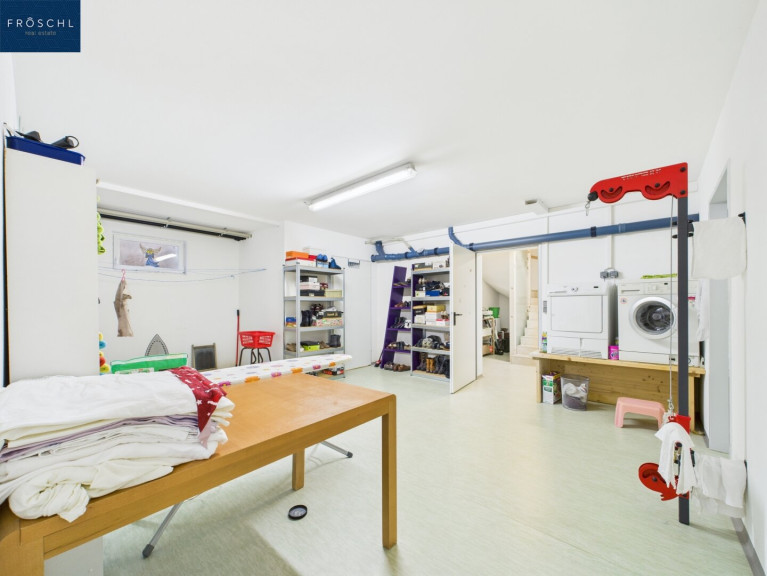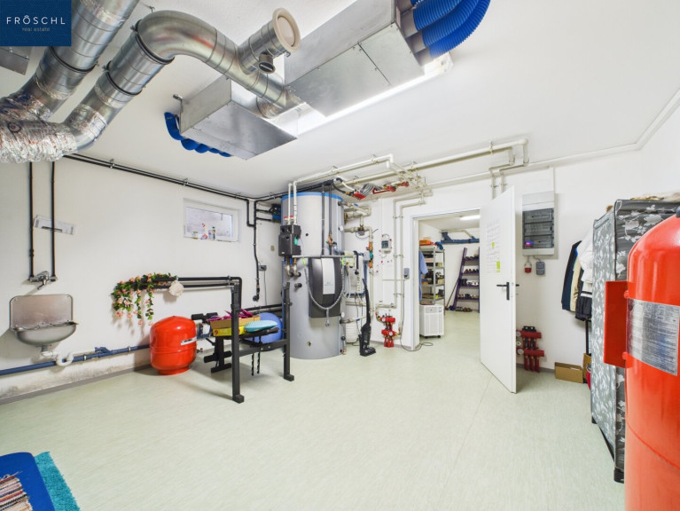 Das in massiver Bauweise errichtete Untergeschoss bietet mit Hobbyraum, Waschküche, Technik- und Lagerraum eine vielseitige Ergänzung zur Hauptnutzfläche. Hier ist auch die gesamte Haustechnik untergebracht – Erdwärmeanlage, Solarenergieanlage sowie die Steuerung der Photovoltaikanlage. Ein 43 Meter tiefer Brunnen gewährleistet eine autarke Wasserversorgung in ausgezeichneter Trinkwasserqualität.