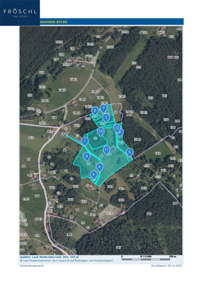 Die Liegenschaft liegt eingebettet in die stille, unberührte Naturlandschaft des nordwestlichen Waldviertels, auf einer Seehöhe von rund 560 m. Die Ortschaft Wielandsberg ist eine Katastralgemeinde der Stadtgemeinde Heidenreichstein (Bezirk Gmünd) und gehört damit zu einer Region, die für ihre weitläufigen Wälder, klare Luft und naturnahe Lebensweise bekannt ist. Die nächste Versorgungsinfrastruktur findet sich in Heidenreichstein, in unmittelbarer Nähe von wenigen Fahrminuten. Die wichtigsten regionalen und überregionalen Zentren sind mit dem PKW bequem erreichbar: Regionale Erreichbarkeit: - Heidenreichstein (Versorgung, Burg, Nahverkehr): ca. 5 km / ca. 8 Minuten - Waidhofen an der Thaya (Bezirkshauptstadt): ca. 15 km / ca. 14 Minuten - Gmünd (Bahnverbindung, Einkauf): ca. 19 km / ca. 17 Minuten - Zwettl (Stift, Regionalzentrum): ca. 35 km / ca. 35 Minuten Überregionale Erreichbarkeit: - St. Pölten (Landeshauptstadt NÖ): ca. 115 km / ca. 1 Stunde 25 Minuten - Wien (Bundeshauptstadt): ca. 136 km / ca. 1 Stunde 40 Minuten - Linz: ca. 110 km / ca. 1 Stunde 20 Minuten - Prag: ca. 200 km / ca. 2 Stunden Die Lage im nordwestlichen Waldviertel, unmittelbar an der tschechischen Grenze – der nächste Grenzübergang ist in wenigen Kilometern erreichbar –, unterstreicht die besondere geografische Position dieser Liegenschaft im Herzen Mitteleuropas. Das Waldviertel erfreut sich wachsender Beliebtheit als Standort für landwirtschaftliche Betriebe, touristische Konzepte und naturnahe Lebensmodelle. Die Kombination aus hoher Lebensqualität, intakter Natur und vergleichsweise moderaten Grundstückswerten macht diese Lage zu einem strategisch attraktiven Standort mit nachhaltiger Perspektive. Weitere Details finden Sie im informativen Lage-Exposé, das Ihnen im Anhang als Download zur Verfügung steht.