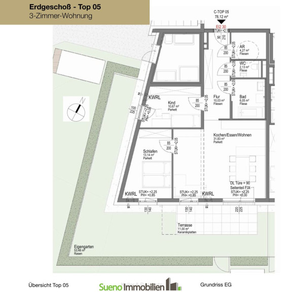 - 78,11 m² Wohnraum mit 53 m² Garten
