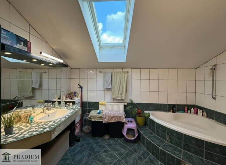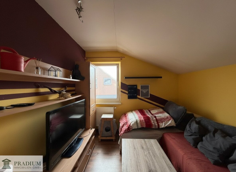 Im Dachgeschoss stehen drei weitere Zimmer zur Verfügung, die flexibel als Schlaf-, Kinder- oder Arbeitszimmer genutzt werden können. Ein weiteres Badezimmer mit WC sorgt auch hier für Komfort. Insgesamt verfügt das Haus über zwei Bäder und zwei Toiletten – ein klarer Vorteil für Familien oder Mehrpersonenhaushalte.