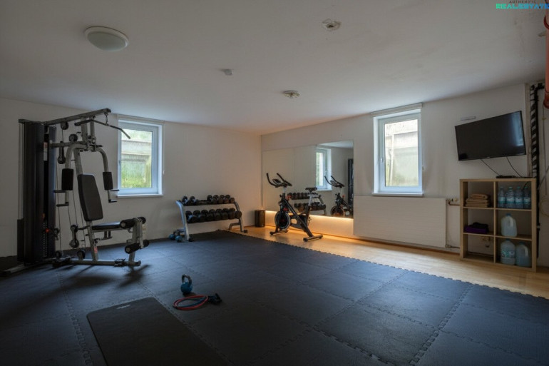 Zusätzlich steht ein ca. 120 m² großer Keller zur Verfügung, der vielfältige Nutzungsmöglichkeiten bietet – ob Hobbyraum, Fitnessbereich oder zusätzlicher Stauraum.