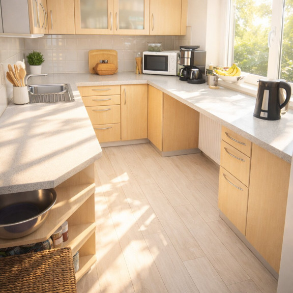 Dieses charmante Massivhaus besticht durch seine helle und freundliche Atmosphäre. Die Einbauküche fügt sich harmonisch in den Wohnbereich ein und bietet ausreichend Platz für kulinarische Entfaltung.