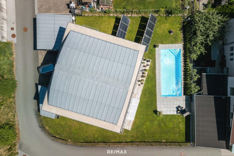 Der Außenbereich ist ein echtes Highlight: Ein großzügiger, beheizter Pool samt hochwertig sanierter Sonnenterrasse (2023) lädt zum Entspannen ein. Die Solaranlage sorgt für umweltfreundliches Heizen des Pools und ergänzt das nachhaltige Gesamtkonzept der Immobilie. Der liebevoll gepflegte Garten sowie eine überdachte Terrasse mit Blick ins Grüne runden das Angebot perfekt ab.