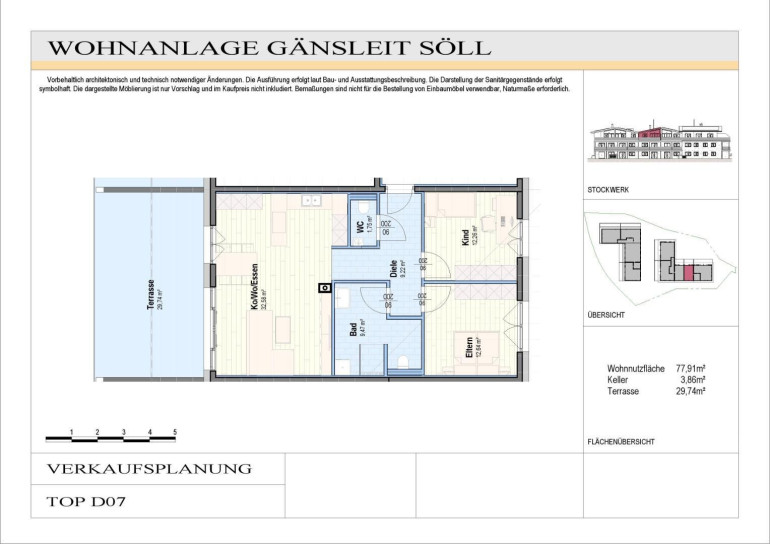 Mit einer Wohnnutzfläche von rund 78 m² sowie einer beeindruckenden Terrasse mit rund 30 m² eröffnet diese Penthousewohnung großzügige Wohnräume und atemberaubende Ausblicke auf die Tiroler Bergwelt