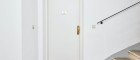 Man betritt die Wohnung über einen Vorraum, von dem aus alle Räume dieses Apartments zentral begehbar sind. Das helle, geräumige Wohnzimmer mit ca. 32,00 m² Wohnfläche und einem französischen Fenster befindet sich im Neubau mit Blick in den begrünten Innenhof. Ein idyllischer elektrischer Kaminkomplettiert das behagliche Ambiente dieses Raumes.