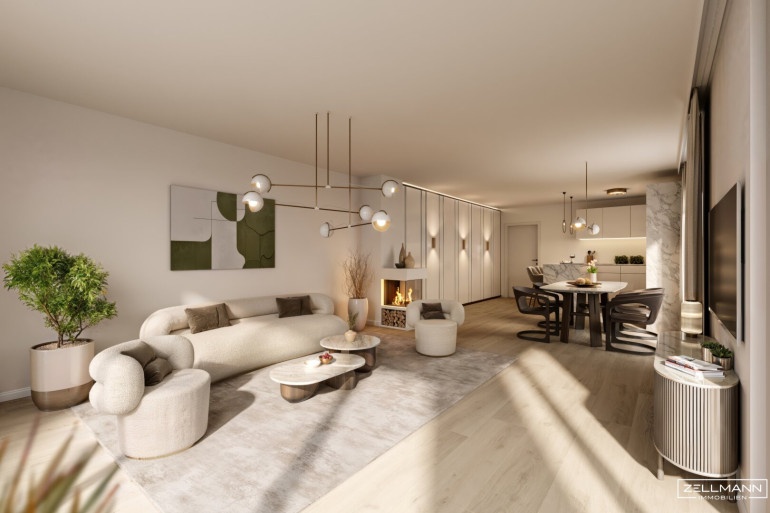 Der Wohnbereich wird zur entspannenden Wohlfühloase – auf Wunsch auch mit offenem Kamin – und verbindet Atmosphäre, Komfort und stilvolle Innenarchitektur auf höchstem Niveau.