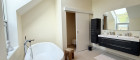 Die Materialwahl folgt einem kompromisslosen Anspruch: geölte Eiche, Naturstein, maßgefertigte Tischlerelemente, moderne Badarchitektur.