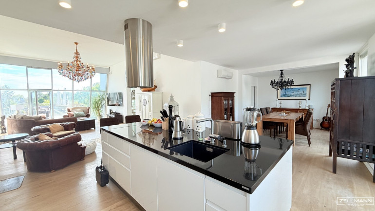 Der offene Wohn-Ess-Bereich bildet das Zentrum dieser Residenz.