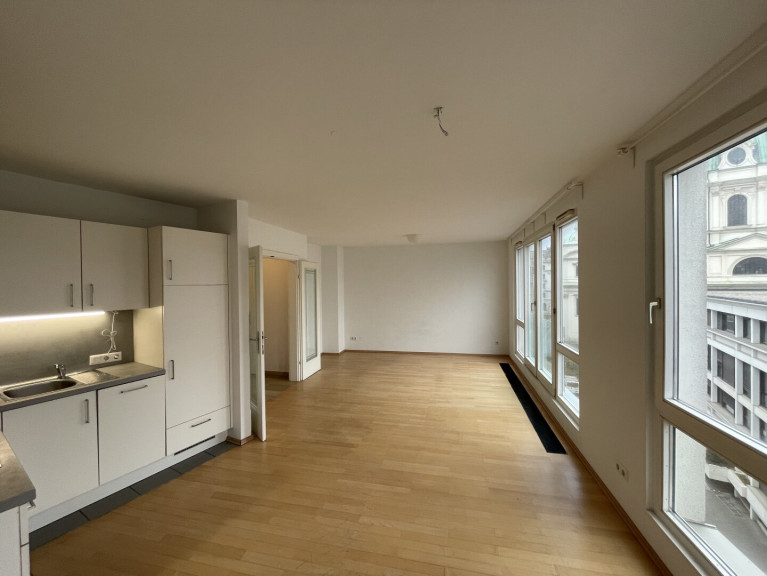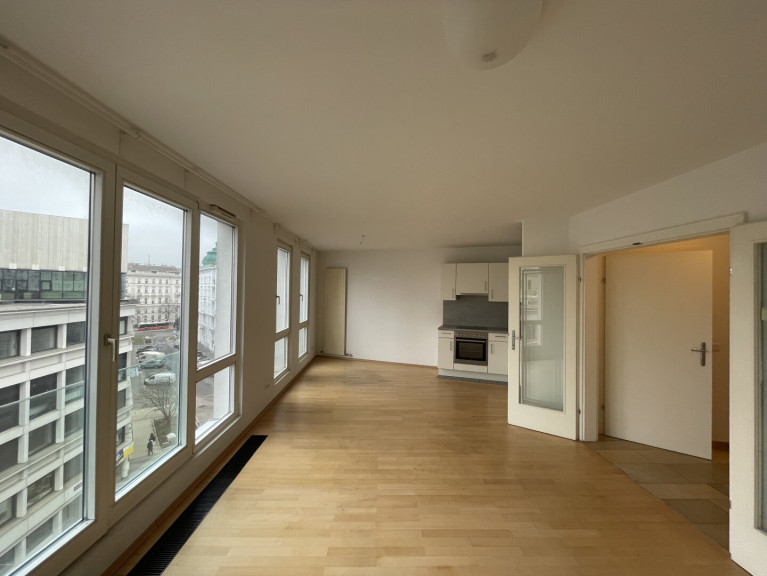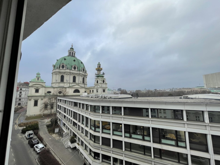 Diese helle und westlich ausgerichtete 3-Zimmer-Wohnung befindet sich im 5. Liftstock (Fernblick!) eines modernen und hochwertig ausgestatteten Gebäudes direkt neben Schwarzenbergplatz/Karlsplatz.