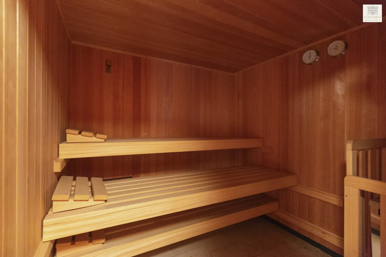 Ein eigener Wellness-Bereich ist bereits Teil des architektonischen Gesamtkonzepts und bietet Potential für die Modernisierung bzw. Errichtung eines persönlichen Rückzugsortes. Die bestehende Garage bietet Platz für zwei PKW, es besteht auf der Liegenschaft die Möglichkeit bei Bedarf eine zusätzliche Garage zu errichten – ideal für weitere Fahrzeuge oder ein individuelles Nutzungskonzept.