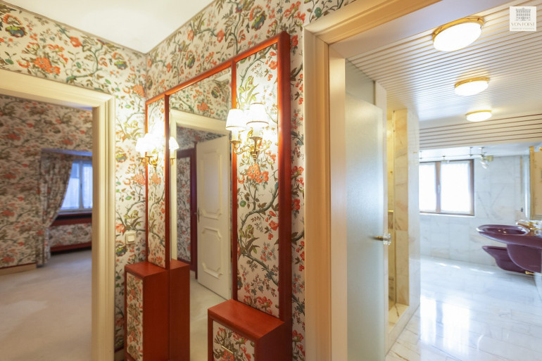 Auf rund 400 m² Wohnnutzfläche entfaltet sich ein Raumgefühl, das inspiriert: bis zu 5 Meter hohe Decken, lichtdurchflutete Wohnbereiche, großzügige Schlafzimmer mit Badezimmer en suite sowie stilvolle Akzente wie ein offener Kamin, der Wärme und Atmosphäre schafft. Jedes Detail vermittelt Charakter und zeitlose Wertigkeit.