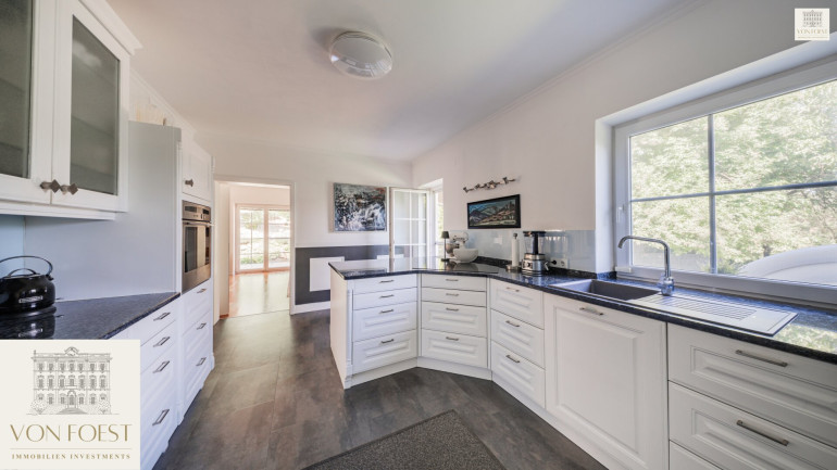 Die hochwertige Einbauküche ist ein Ort, an dem Kochen zur Freude wird. Mit modernen Geräten und einem angrenzenden Essbereich bietet sie den idealen Raum für gesellige Zusammenkünfte mit Familie und Freunden.