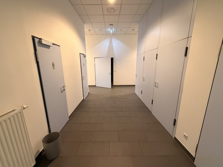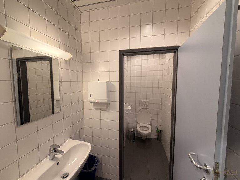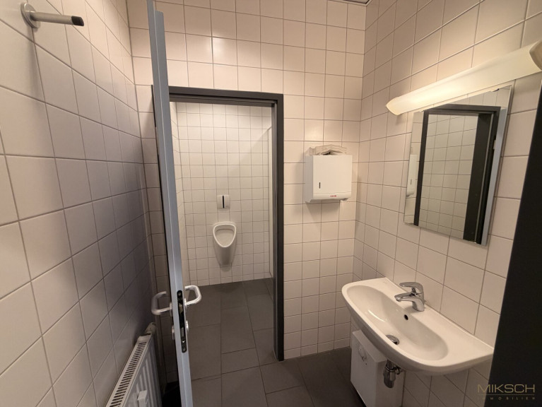 Zur praktischen Ausstattung gehören eine gut ausgestattete Teeküche, ein Pissoir, ein Abstellraum sowie getrennte Sanitäranlagen inklusive Gäste-WC. Die Immobilie ist vollständig barrierefrei zugänglich und bietet somit höchsten Komfort für Mitarbeiter, Kunden und Besucher.