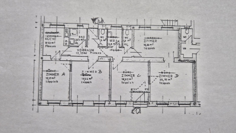 Hier kommt ein im Erdgeschoß gelegenes Wohnungseigentum, Wohnung und Büro, zum Verkauf. Ein laut Energieausweis ursprünglich aus etwa 1864 stammendes Altbauhaus wurde nachträglich adaptiert und ausgebaut und schließlich 1993 Wohnungseigentum begründet. Das Objekt ist im vorliegenden Nutzwertgutachten mit 57m² Nutzfläche Wohnen und 61,99m² Nutzfläche Büro, also ingesamt 118,99m² Nutzfläche ausgewiesen. Es verfügt über fünf, großteils zentral begehbare Zimmer, eine Küche, ein Duschbad, einen Abstellraum und zwei Toiletten. Für die letzte Nutzung als Büro wurden zu diesem Zweck die Räume entsprechend mit strapazierfähigen Böden, abgehängten Decken mit hellen Lichtpanelen und umfangreicher Elektroinstallation inklusive Netzwerkverkabelung adaptiert. Beheizung und Warmwasserbereitung erfolgen über eine Gaskombitherme. Das Objekt ist mittels eigenem Eingang direkt von der Straße, aber auch hofseitig zu betreten, was auch zu einer vielseitigen Verwendbarkeit beiträgt. Die Hauptausrichtung nach Süden mit dem gegenüberliegenden kleinen Park vor der Türe, die Nähe nicht nur zu vielen kleinen und großen Betrieben, sondern auch zum Naherholungsgebiet Liesingbach sind auch noch positiv zu erwähnen.