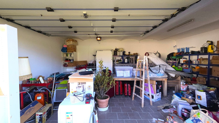 Fliesen, Heizofen, Kamin, Einbauküche, Bad mit Fenster, Dusche, Garage, Parkplatz, Wasch/Trockenraum