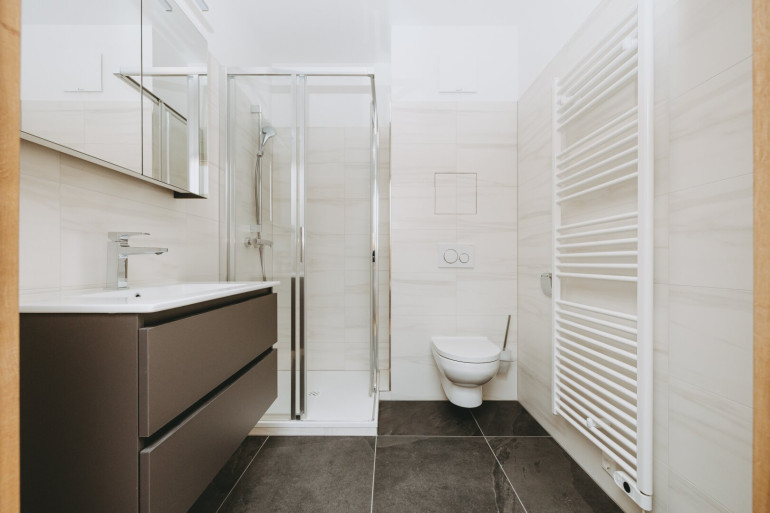Parkett, Fliesen, Gas, Zentralheizung, Einbauküche, Personenaufzug, Dusche, Parkplatz