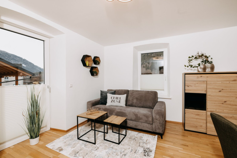 Diese charmante, hochwertig ausgestattete Ferienwohnung bietet auf rund 47 m² eine ideale Kombination aus alpinem Wohngefühl, modernem Komfort und touristischem Potenzial. Der offene Wohn- und Essbereich ist stilvoll möbliert und lichtdurchflutet – ideal für entspannte Tage und gesellige Abende nach einem Tag am Berg oder am See.Raumaufteilung TOP 4: