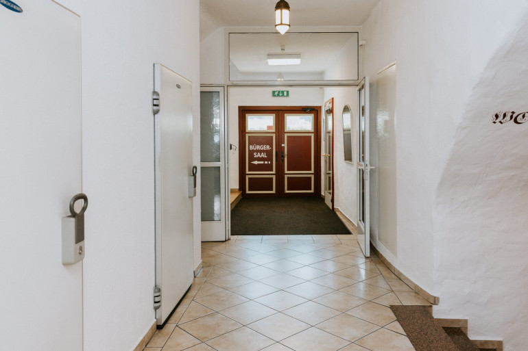 Im Obergeschoss des geschichtsträchtigen Gebäudes befindet sich noch der sogenannte "Bürgersaal", welcher für größere Veranstaltungen ideal geeignet ist. Daneben befinden sich noch ausreichend verschiedene Stau- und Lagerräume.