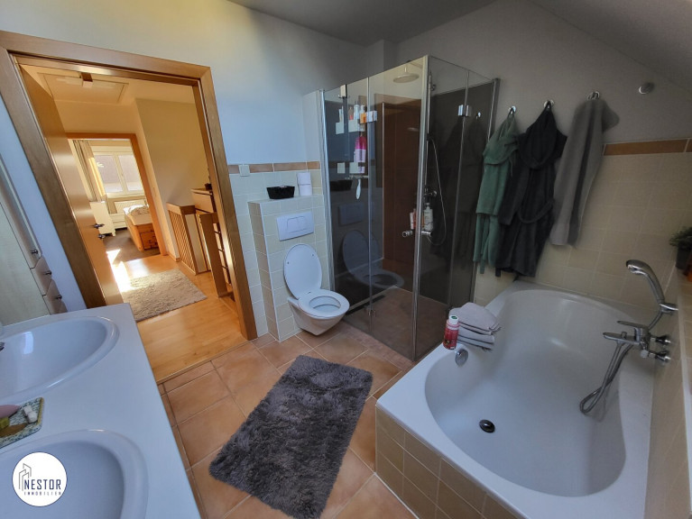Badezimmer mit Wanne, Dusche und WC: ca. 7,43 m²