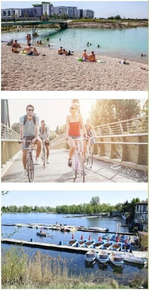 Sportplätze, Grünflächen sowie Freizeitmöglichkeiten wie Alte Donau und Sporthalle Lieblgasse