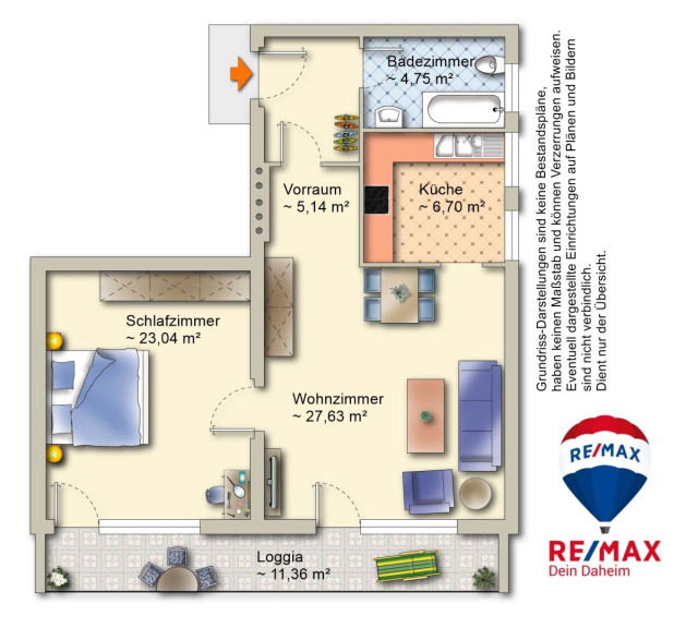 Die Wohnung überzeugt durch ihren praktischen Schnitt und eine durchdachte Raumaufteilung. Vom Vorraum aus sind alle Bereiche bequem begehbar. Das moderne Badezimmer ist mit einer Badewanne ausgestattet und bietet angenehmen Komfort. Die voll möblierte Küche lädt zum Kochen und Verweilen ein.