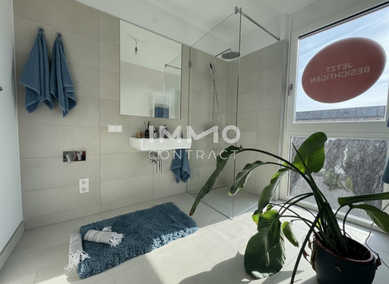 - Hochwertige Feinsteinfliesen und Markensanitäranlagen (Dornbracht, Laufen "pro")