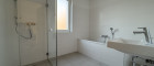 Hochwertiges Badezimmer mit Tageslicht – Genießen Sie entspannte Wellnessmomente in einem modern ausgestatteten Bad mit Fenster, Dusche und edler Keramik sowie Doppelwaschbecken.