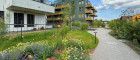 Eingebettet in die künstlerische Gartengestaltung von André Heller bieten die neuen Wohnungen einen großzügigen Blick in die weite Landschaft über die benachbarte Kleingartensiedlung. Das lebendige Farbenspiel der diversen Mosaikböden bei den Glashäusern und die mediterrane Bepflanzung im marokkanischen Garten schaffen eine harmonische Verbindung zwischen Architektur und Natur. Eine Allee aus Bambus bildet entlang der südlichen Grenze einen malerischen grünen Abschluss und eine geschützte Ruhezone für die Bewohner.