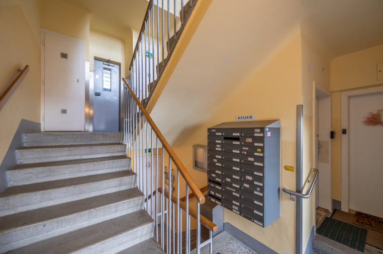 Die Wohnung befindet sich im 2. Stock mit Aufzug (nicht barrierefrei) eines ca. 1958 erbauten Neubaus.