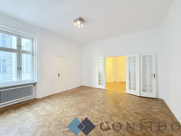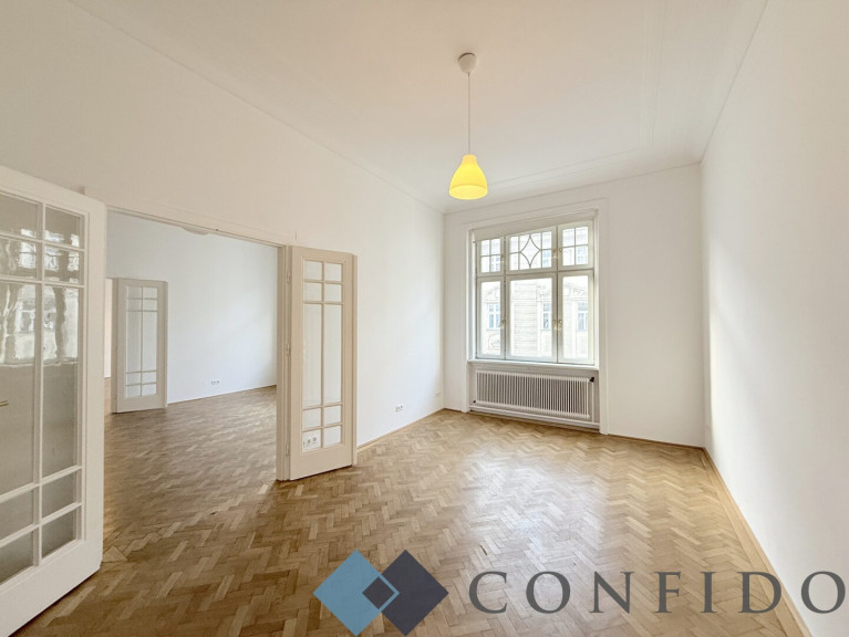 Zur befristeten Vermietung gelangt dieses großzügige, ca. 190m² große Büro in großartige Lage -unmittelbar beim Alten AKH. Es liegt im 3. Liftstock eines sehr gepflegten Hauses. Wunderschöne Parkettböden, stilgerechte Doppelflügeltüren, grandiose Raumhöhen - hier werden sämtliche altbautypischen Kriterien erfüllt. Die Immobilie verfügt über 5 Zimmer, die eine Größe zwischen 20m² und 30m² haben -alle sind separat zu betreten. Neben der vollausgestatteten Küche ist noch ein Essbereich mit Balkon. Im größeren Badezimmer befindet sich eine Badewanne und eine Toilette - im kleineren Badezimmer ist eine Toilette mit einer Dusche. Der großzügige Vorraum mit genügend Platz für Stauraum bzw. einem Empfangsbereich, komplettiert das attraktive Immobilienangebot.