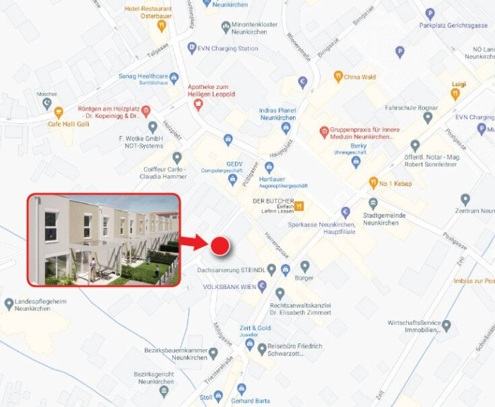 Die Wohnhausanlage liegt im Zentrum von Neunkirchen, nur wenige Meter vom Hauptplatz entfernt, in absoluter Ruhelage